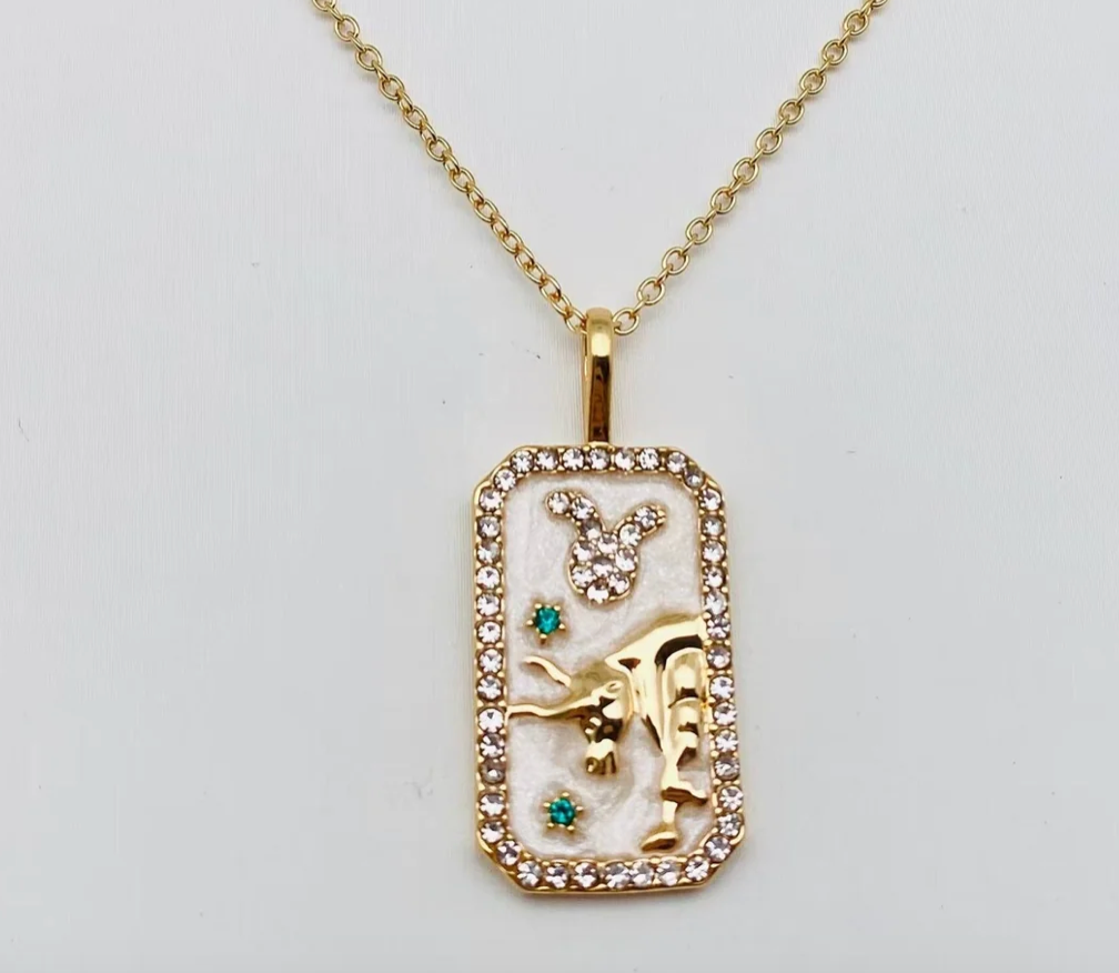 Taurus- Astrological Zodiac-Gold, Steel, CZ Enamel