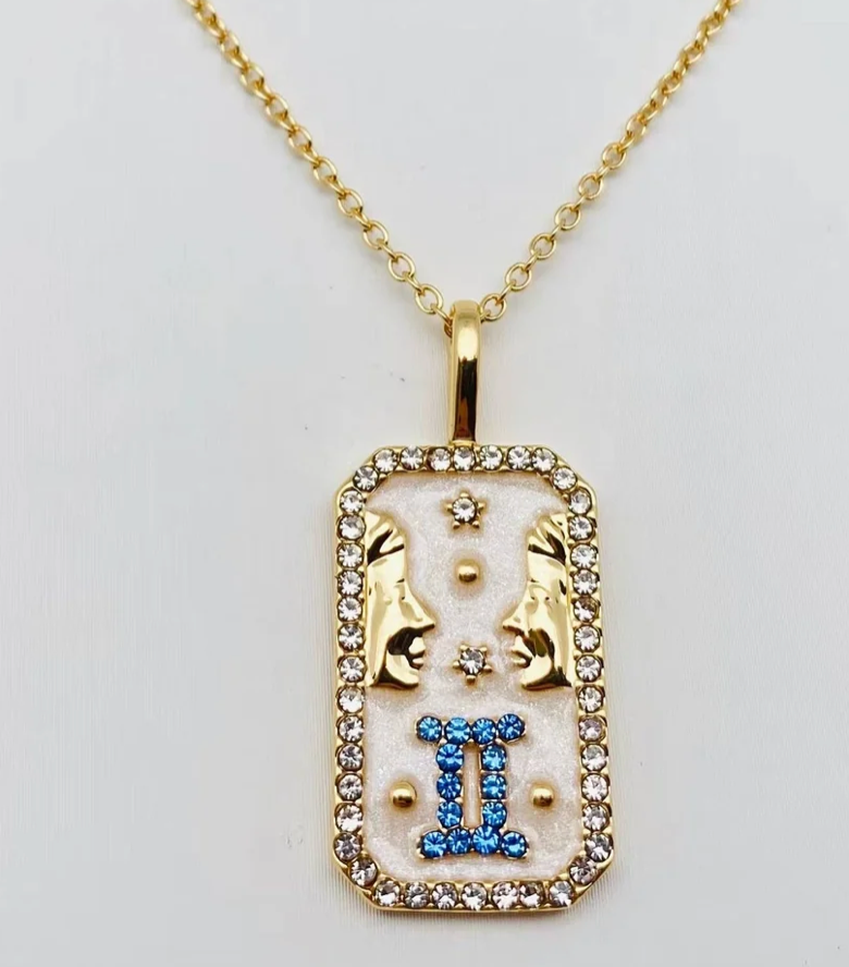 Gemini-Astrological Zodiac-Enamel and CZ Tarot Card